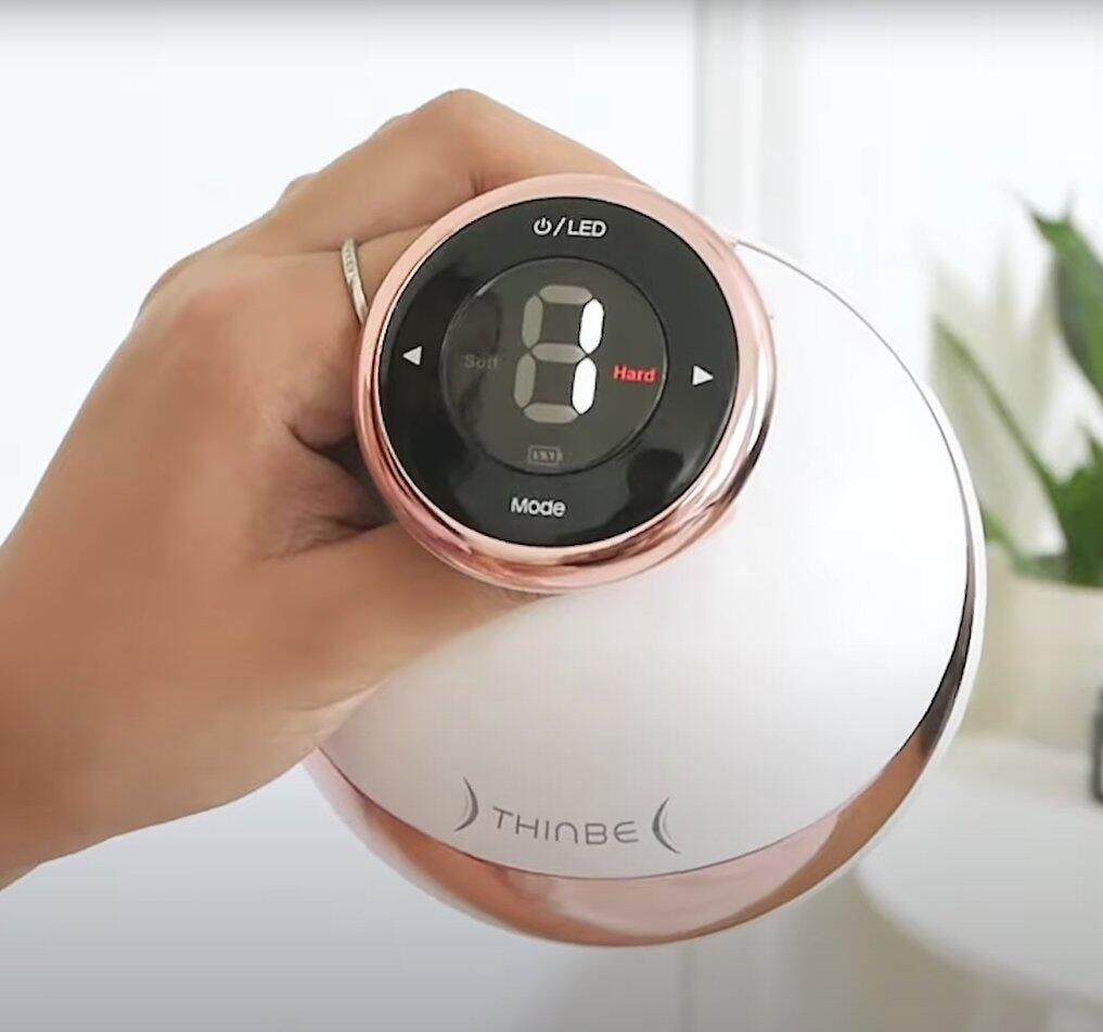 Introducing THINBE, the latest model from Korea that helps slim and define your body. With a compact size of 115 and a weight of 610g, it's easy to use and portable. The battery specifications of 3.7V/1,800mAh ensure a long-lasting charge, while the 5 different levels of operating frequency (990Hz~1,010Hz / approx. 16V~40V) cater to different needs. Certified by KC, CE, FCC, RoHS, and SRRC for quality assurance and consumer confidence.