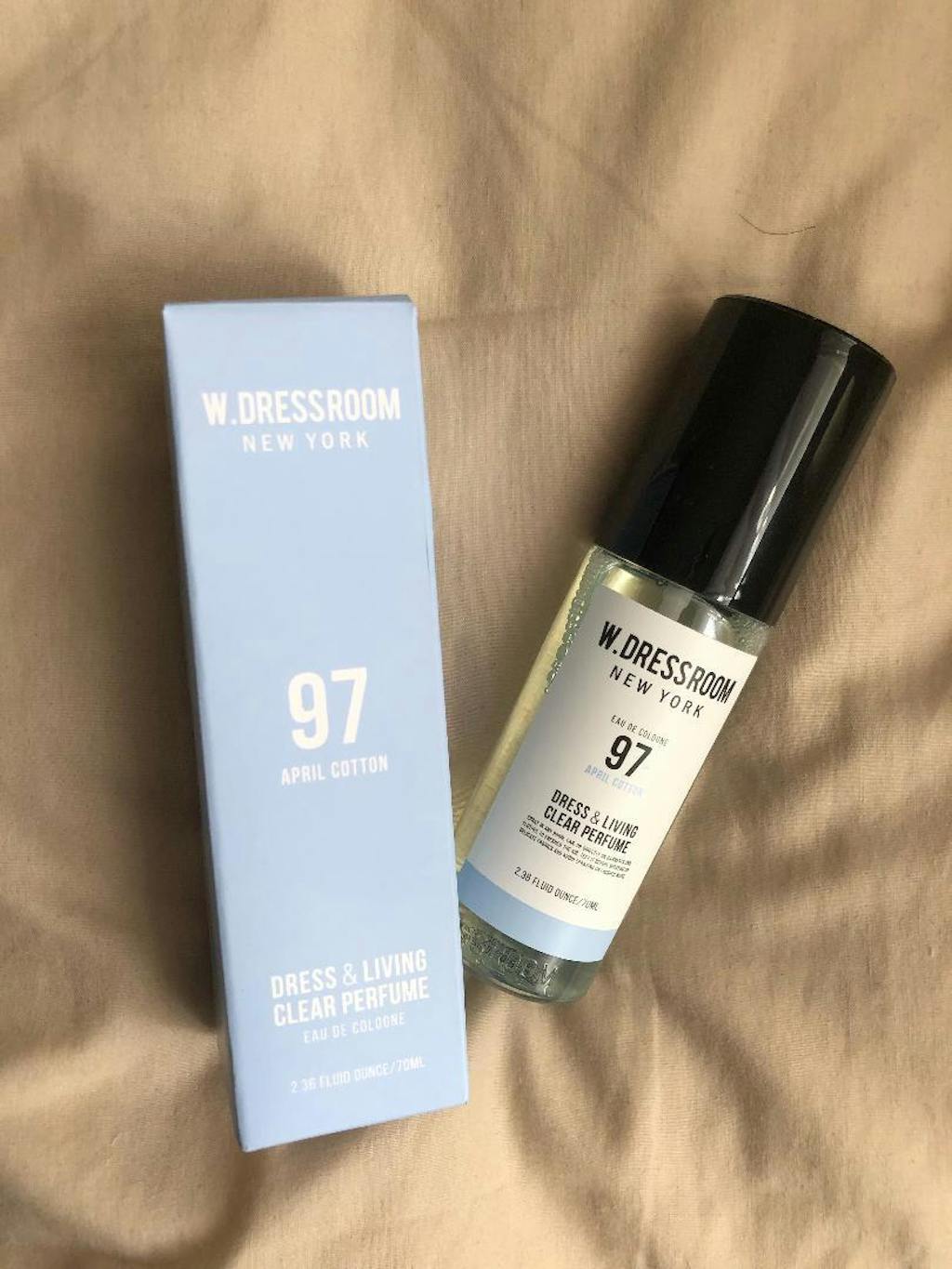 The W.Dressroom Dress Perfume sprays evenly without leaving water droplets, gently absorbing into fabrics and leaving a subtle fragrance that lasts.