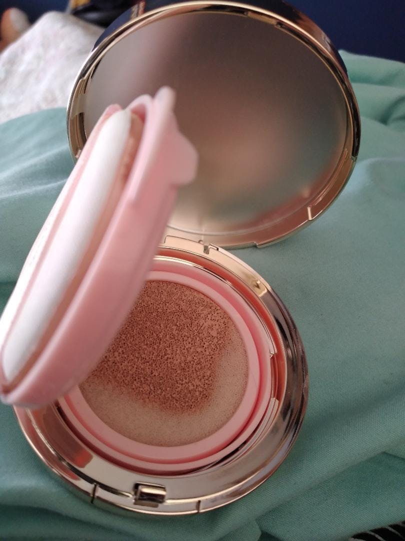 This cushion foundation hides skin blemishes for a flawless complexion.