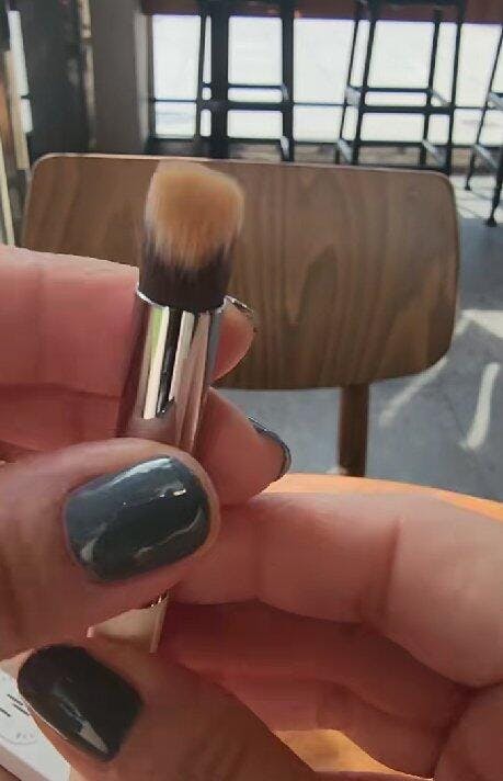 When applying cream products, gently tap with the broad side of the brush to blend edges naturally.