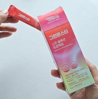 - Green Monster Skin Solution Protect is a health functional food recognized for skin functionality by the Ministry of Food and Drug Safety.