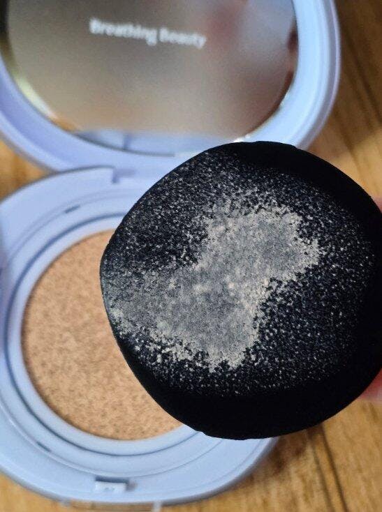 The product also includes a set of cushion puffs for easy application.
