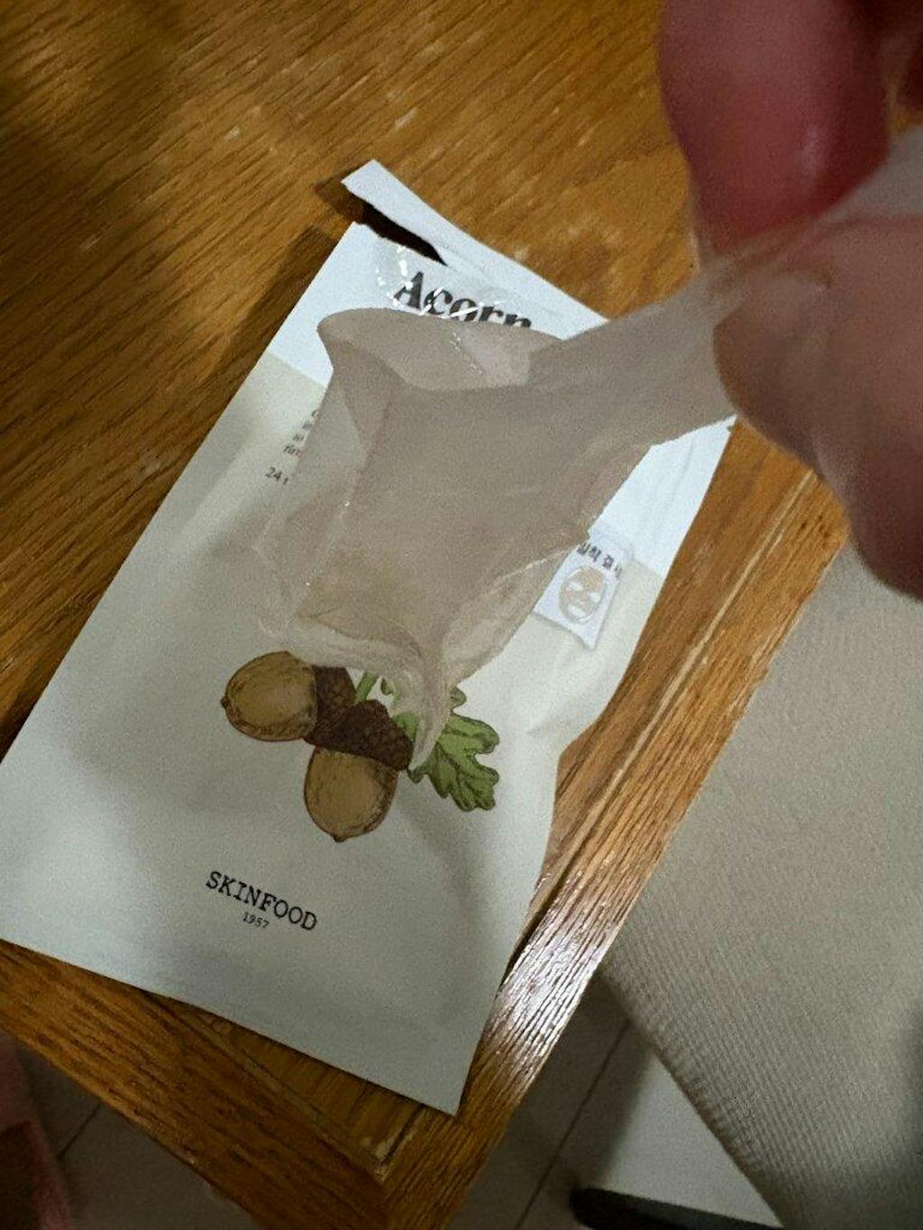 See MoreThe acorn mask has this gel-like texture that adheres beautifully to your face. After 20 minutes, it's still as moist as when first applied, no drying at all. When you remove the mask, there's plenty of essence left on your face, leaving your skin super firm with a glow and instant pore-refining effect. It hydrates well, and even hours later without applying cream, you don't feel much dryness! I could easily make it part of my daily routine without any worries.