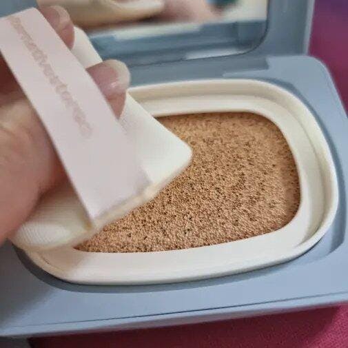 "Después de usar el producto base, tome una cantidad apropiada usando una bocanada durante el paso de base y aplíquelo dando palmaditas en la cara".